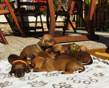 Prodám štěňata jezevčíků hladkosrstých standardních ze spojení Kuky Magic Seven x Fantagiro Stříbrný nůž. K odběru první polovina listopadu.