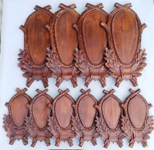 Ručně řezbované podložky pod lovecké trofeje, včetně podložek pod trofeje preparované v kůži. Podložky jsou z lipového dřeva (hluboká řezba) voskované. Velikost, různé detaily i barvu podložky lze na přání přizpůsobit. Bližší informace na: Tel. 725 759 699 tz.rezbapodlozek@seznam.cz