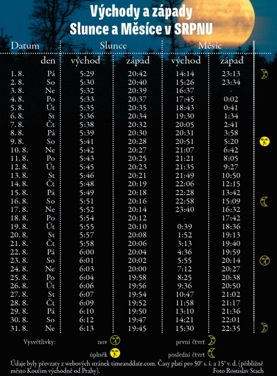 Východy a západy slunce a měsíce