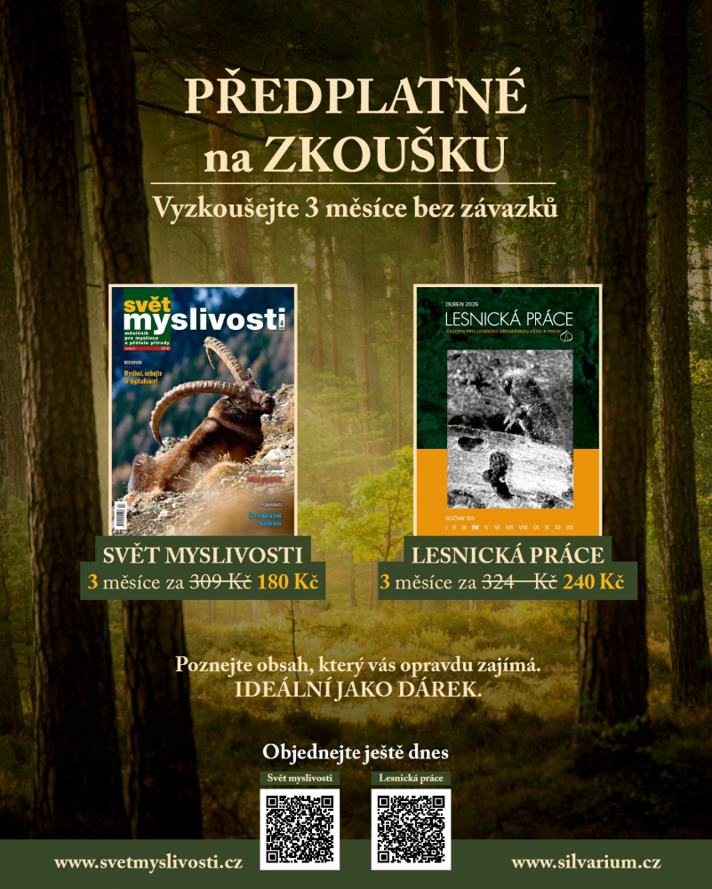– Předplatné Světa myslivosti „na zkoušku“ (pro nové či vracející se předplatitele) – na tři měsíce jen za 180 Kč (běžná cena 309 Kč)!