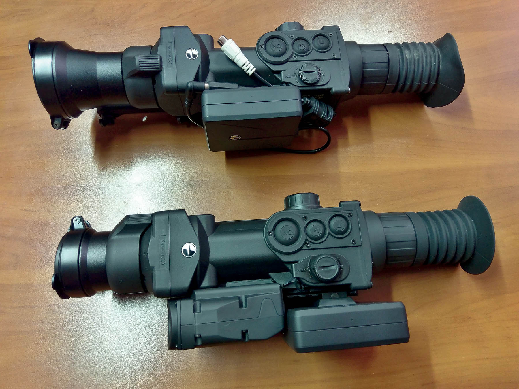 Kvůli dálkoměru bylo nutné posunout dozadu montážní lištu weaver na připevnění příslušenství, např. externího napájecího zdroje. To s sebou přináší drobné problémy. Externí zdroj EPS3i, který je k přístroji doporučován, lze připevnit jen v jediné poloze – šroubkem dolů s kabelem dozadu. Při opačné montáži se i v krajní pozici kabel láme mezi tělem dálkoměru a tělem zdroje. Pro použití externího zdroje je třeba využít speciální kabel (je součástí dodávky), který se našroubuje zespodu na tělo přístroje. Kabel má speciální koncovku a lze ho namontovat do jediné polohy, kdy směřuje vpřed. Propojení kabelu z přístroje s kabelem externího zdroje tak, aby to nikde nepřekáželo a kabel se přitom nelámal, není vůbec jednoduché a chce to trochu zkoušení. Přístroj lze samozřejmě používat i bez externího zdroje, ale výdrž dobíjecích baterií CR123 není nijak velká, přibližně pět až šest hodin. Na každou vycházku by je tedy bylo nutné dobíjet. S externím zdrojem je možné v pohodě vyrážet celý týden na lov a dobíjet až poté. Navíc současné modely EPS3i mají diodové znázornění stavu baterie, což na mém starším přístroji bohužel chybí.