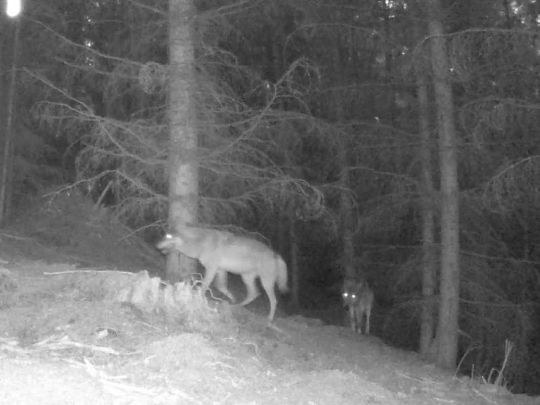 Pár vlků zachycený na fotopasti při mapování. Foto Jana Dvořáková / navratvlku.cz
