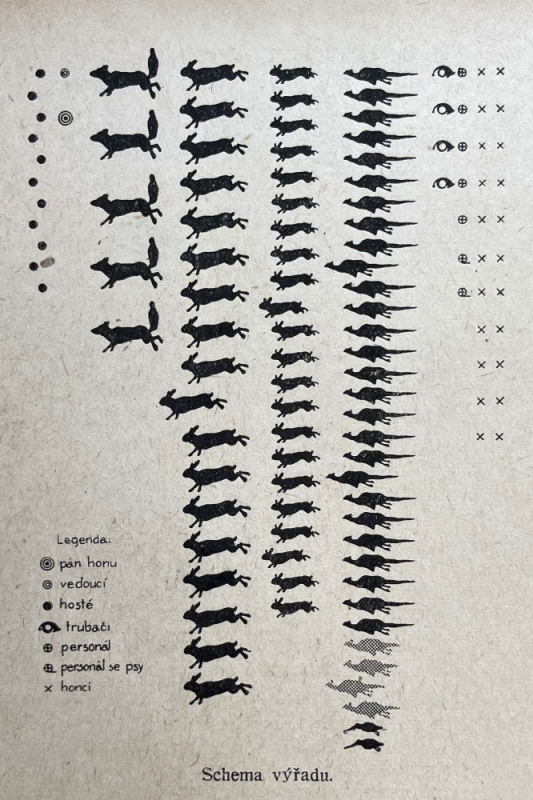 4. Právě na tom, jak se vyvíjelo postavení vedoucího lovu a trubačů, můžeme vidět, že naši předkové přemýšleli a nebáli se měnit již zavedené zvyklosti. Proto se vedoucí lovu a pán myslivosti přemístili z řady střelců na bok proti hřbetům zvěře, kde je jejich projev mnohem lépe slyšet. Trubači pak byli posunuti proti nim, aby nestáli pohromadě s honci a celý prostor výřadu se tak uzavřel.