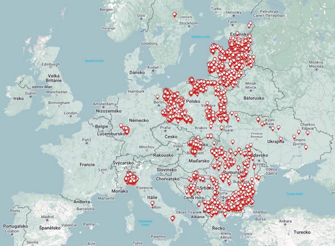Mapa 1: Výskyt afrického moru prasat u prasat divokých v Evropě v roce 2024