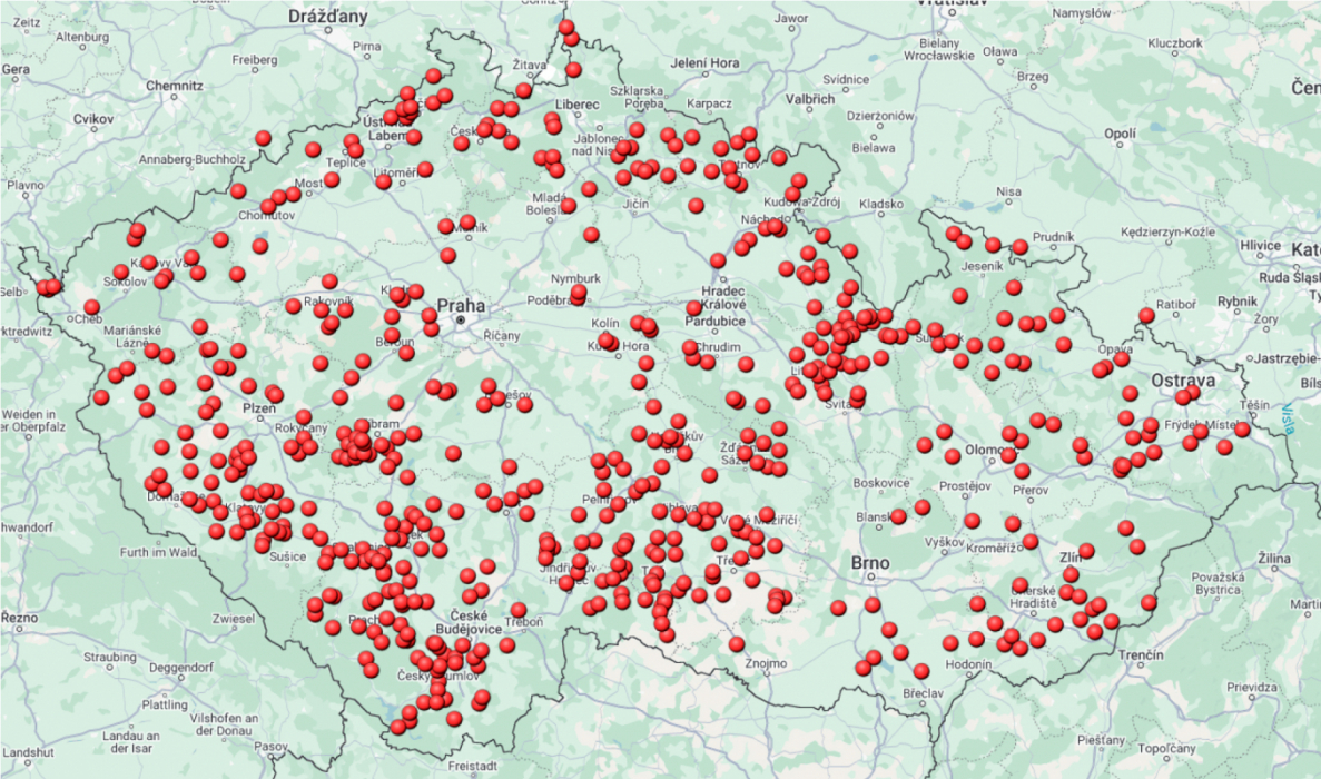 Mapa 2: Pozitivní nálezy alveokokózy u lišek v roce 2024
